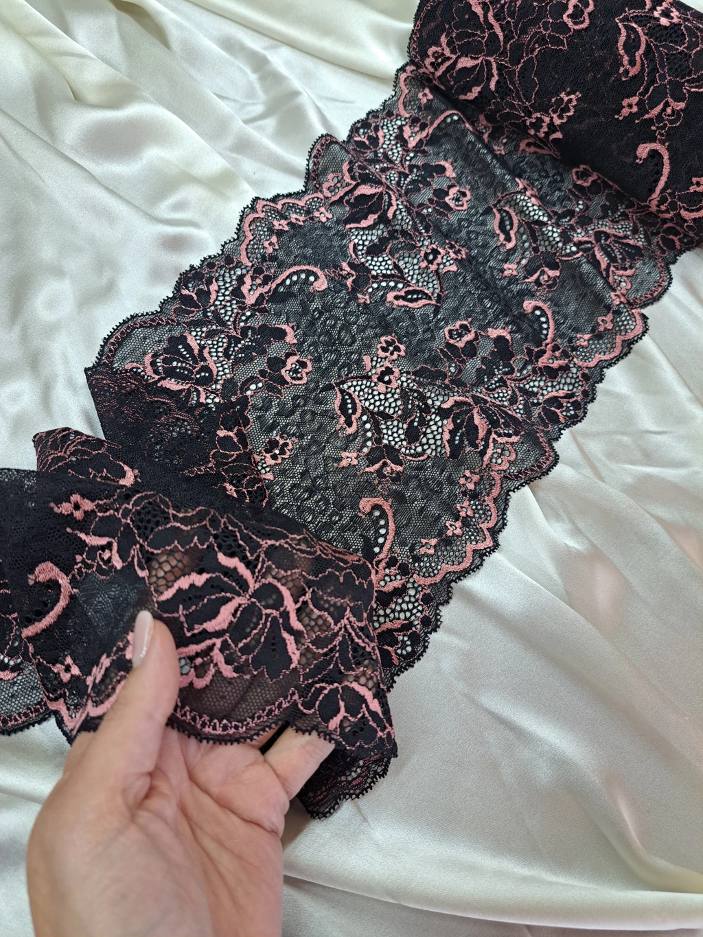 Corpiño con pinzas en las copas y cintura con base para mejor soporte, de algodón con lycra con doble tela en las copas y cintura. Con apliques de puntilla.